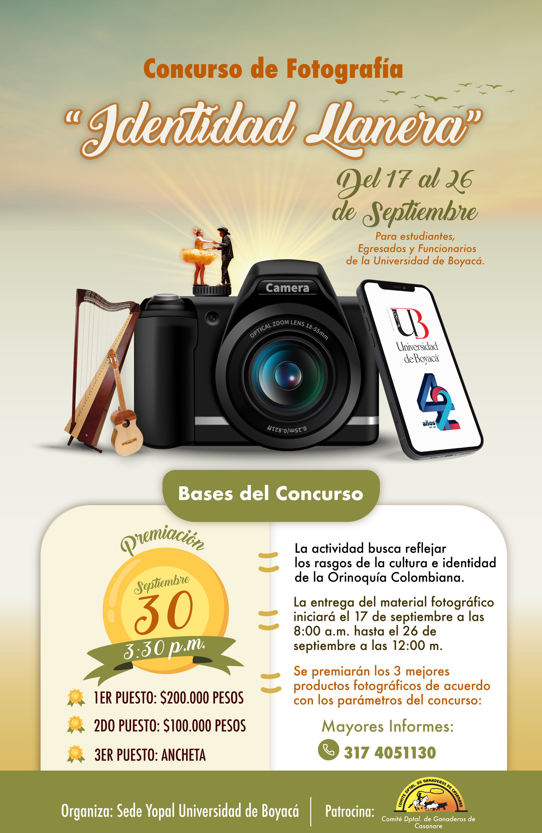 Finalidad: El concurso busca reflejar por medio de fotografías la identidad y cultura Llanera de la Orinoquía Colombiana.